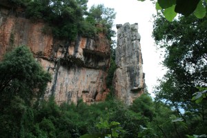 Donem aquest cop la volta i refem el mateix camí de tornada. De seguida ens fixem ara en Les Dues Germanes, on uns escaladors estan a meitat de camí per a fer el cim.