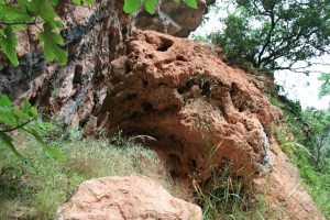 A prop del destí, a ma esquerra del camí ens sorprèn una balma, encara que força deteriorada amb pintades. Una llàstima.
