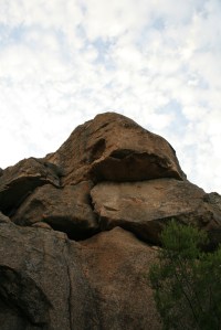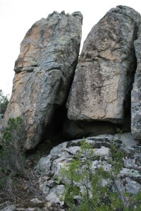 Quan arribem a la primera casa de la urbanització, aparquem. Segons els GPS estem ben a prop. Efectivament, reculem una mica i ja albirem una torre de roques a ma esquerra que destaca dalt d’un turó.