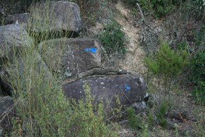 Hola Núria. Llàstima, la heu de trobar! Aquest any no hi hem anat i per tant no sabem si les pintures blaves encara hi són … Si pots, descarrega la ruta http://es.wikiloc.com/wikiloc/view.do?id=1991407