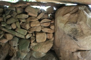 Dins, es veu com els homes (pastors, etc) hi han construït diferents murs com a protecció del vent i la pluja.