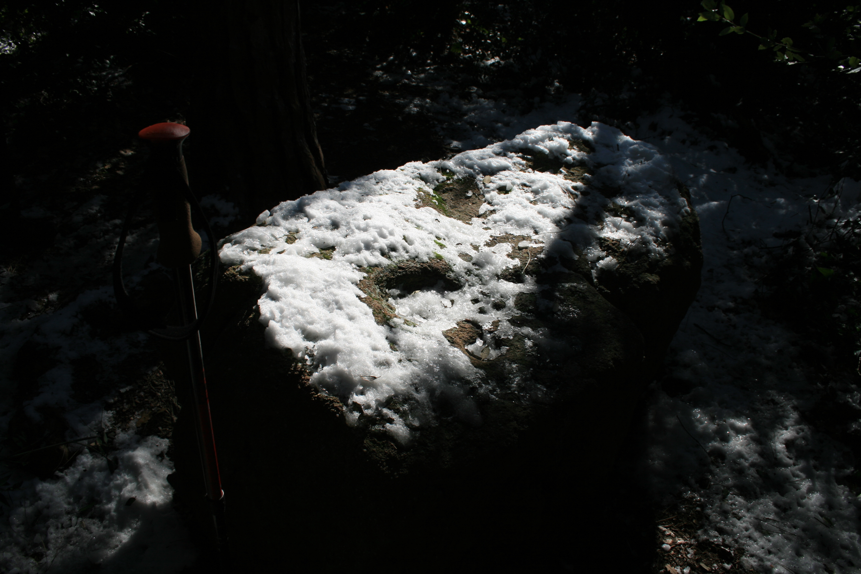 Pedra amb inscultures de Collserola amb neu