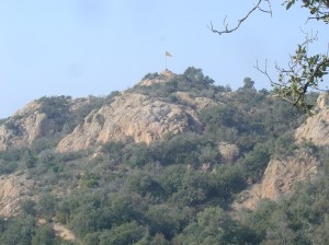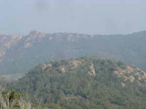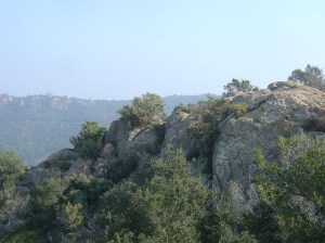 Com anècdota del dia, encara que el cim es diu Montclar, ni aquesta ni la resta de fotografies ens han quedat gaire clares.  Era un dia de boirina persistent (a Barcelona els límits de velocitat es mantenen a 80 km/h per aquest motiu…). Tot i això, direcció nord-oest, just al costat d’una altra torre d’alta tensió, es podia veure des del cim l’anomenada Esfinx, curiosa formació rocosa.