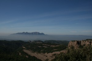 A la nostra esquena podem veure Montserrat, encara que avui no hem tingut sort pel que fa a la nitidesa de l’atmosfera.