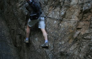 Es pot continuar cap amunt per camí adient per a excursionistes o, si es porta casc i la resta d’indumentària adient, ja es pot seguir la Via Ferrada. Val a dir que aquesta via és ideal per primerencs. El tros entre les dues parets de roca poc separades és molt espectacular.