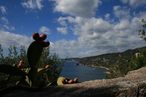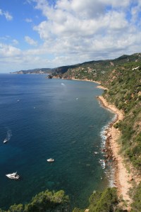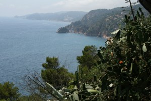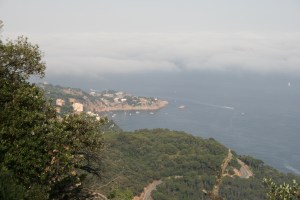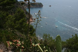 Seguim pel carrer asfaltat principal, que després de passar pel costat d’uns apartaments fa com una “s” cap a l’interior. Per sobre de xalets seguim veient la mar. Es destaca molt la Punta d’en Bosch i la vista arriba fins a Tossa de Mar.