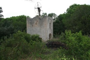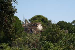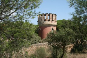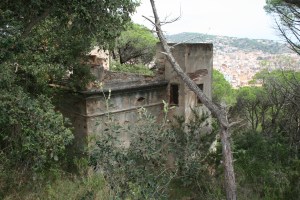 Es tracta del que que queda d’un xalet de principis o meitat del segle XX. En la fotografia de sota, podem veure com destacava a la muntanya aquest edifici fa un segle (per cert, al costat de la punta del Monestir, sobresurt la torre en que hem iniciat el nostre recorregut). Com canvia tot !