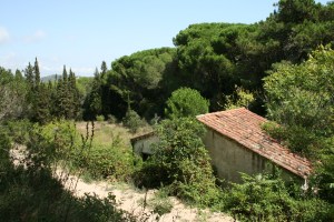 Reprenem el camí i uns 150 metres més endavant, també desviant-nos una mica a la dreta, trobem les restes d’una antiga barraca de pagès.