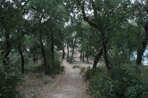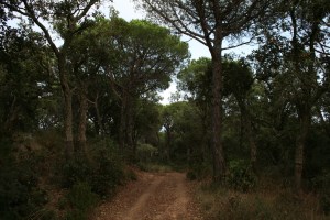Seguim per sobre un camí de terra prou ample entre pins i alzines.