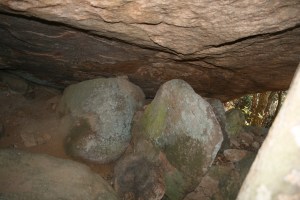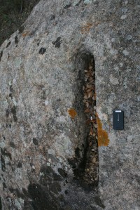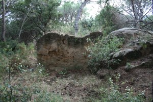 Als peus del turó, uns 30 metres més enllà, podem veure un amuntegament de pedres que ens crida l’atenció.