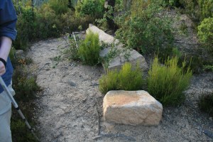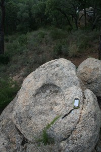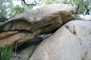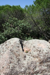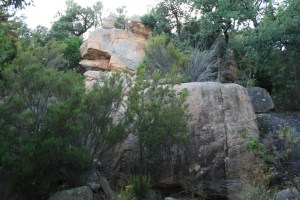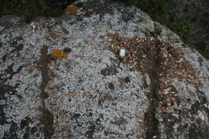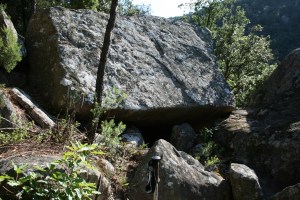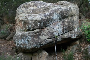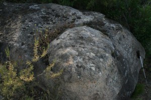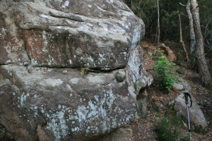 Passem pel costat d’un nou grup de roques, que també a la part superior te una cassoleta d’erosió.