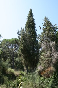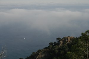 Girem a l’esquerra, cap a la carretera de Tossa. A l’esquerra queda la mar. I ben aviat un pi, ara una mica malalt, que te la singularitat que si t’hi poses a sota és molt fàcil que notis bufar el vent. El forat del vent, en diem.