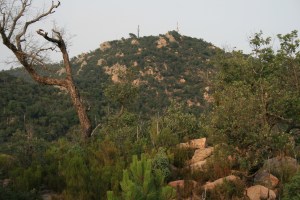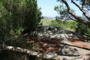 Desprès d’un tomb, a mà esquerra ens queda ara un turonet, amb un senyal geodèsic, i atapeït de roques. Val la pena pujar-hi.