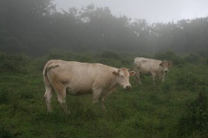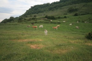 De tornada, ens vam creuar amb unes quantes vaques més i Belinda ens va explicar que segons diuen per la zona, les vaques comparteixen coneixement, s’expliquen experiències. Per exemple, si un any algú ha tingut la mala idea de sacrificar totes les vaques, de les noves que arriben unes quantes acaben estimbades cingles avall, doncs no coneixen el terreny i “cap companya els hi ha explicat”. També es reparteixen la feina. Això darrer es veu quan hi ha vedells i alguna d’elles se’ls queda cuidant mentre les altres pasturen.