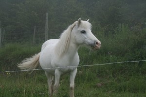 Just a costat de la casa, ens sorprèn trobar un bonic poney blanc.