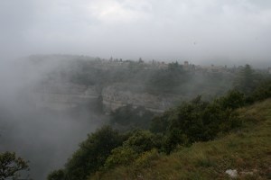 El camí fins Tavertet va tota l’estona seguint els Cingles a no gaire distància. Hi ha boira i això no ens permet de veure els Salts de l’Abeurador i de l’Avellanosa que devien de estar magnífics després de les pluges del dia abans.