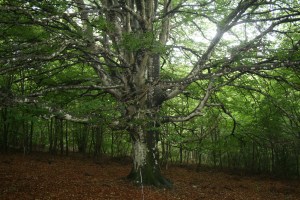 Ja tornem a estar per sobre dels 1.000 metres. El camí pel Serrat de Sant Corneli fins el Collet de les Graus és molt agradable (ens recorda els Motllats !). Arribem al punt més al nord del nostre camí d’avui i girem a la dreta per la muntanya del Perer. Com correspon a l’altitud del terreny i a que estem a l’obaga, passem per entre mig de faigs i n’hi ha dos que destaquen. Un d’ells el fotografiem i després aprenem que és el faig de la Vena, un dels arbres monumentals de la comarca.