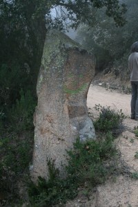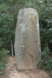 Hem de continuar. Seguint per l’ample GR arribem on es troba el Menhir de Montllor. Aquest menhir antropomorf de granit negre-rosat no és pas dels més espectaculars.