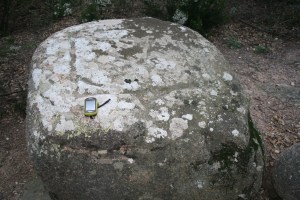 Ara bé, malgrat haver de tornar d’hora, no ens estem d’arribar encara que sigui amb cotxe a una altra de les sorpreses de la zona. Situada en mig d’altres roques en un turonet davant de les runes de la masia de Can Cabanyes. A només 750m seguint el GR en direcció contraria, passant pel costat del cim del Montagut.