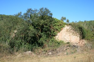 Molt interessant donar un cop d’ull a la part enfonsada que hi ha davant de la porta d’entrada principal. Què hauria haver estat ? Pot-ser un celler de quan la zona era vinícola abans de la fil·loxera ? (Per cert, en alguns trams del camí, hem anat veien vinyes salvatges. Probables restes creiem d’aquest cultiu).