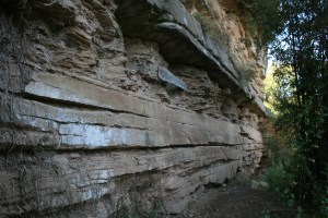Ben aviat però, quan tornem a travessar la Riera Gavarresa, mirem cap amunt. Ja estem a prop. Allà dalt del cingle argilós que tenim al davant, segons hem llegit, hi trobarem els graffiti.