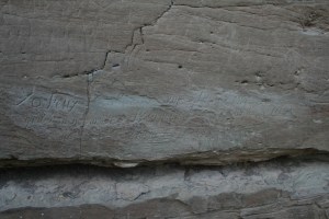 Un espai més gran del que ens pensàvem. A banda del graffiti d’en Perot, de principis del segle XVII i que hem mostrat al començament d’aquesta entrada al blog, hi trobem el famós text que hi va deixar, probablement a començaments del segle XX, un tal Félix Gallardo.