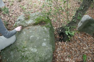 Gràcies a les fotografies que hi ha al document abans esmentat trobem la roca amb els gravats. El cert és que costa de distingir i la hem de netejar amb cura.