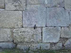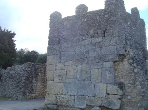 Però nosaltres aquest cop no hi hem entrat. L’hem envoltat. La nostra ruta, que està força ben senyalitzada al llarg de tot el recorregut com a Ruta de les Fonts, comença i acaba a la porta d’entrada al recinte, davant de la muralla ibero-romana.