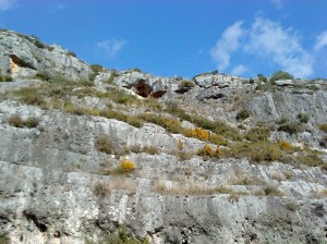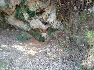 Seguim caminant i just després de creuar la Riera de l’Adoberia (que ens portaria al poble de Sant Miquel d’Olèrdola o La Plana Rodona) entrem dins d’un camí força ample però que queda encaixonat entre cingleres calcàries.